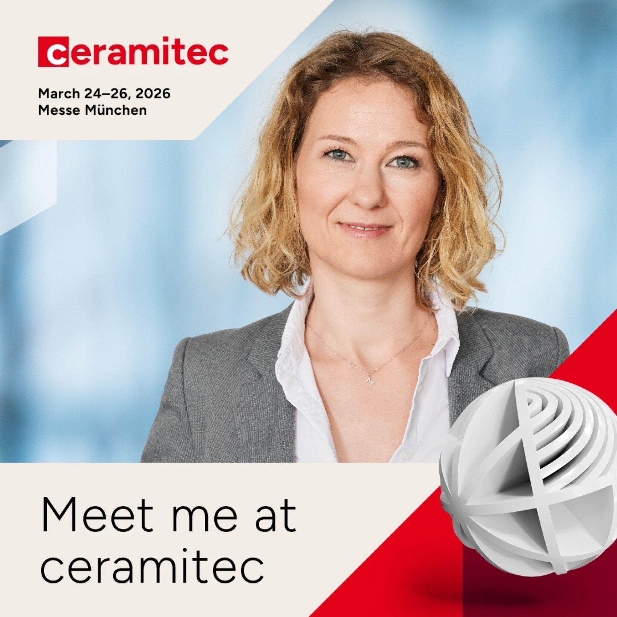 I'm looking forward to giving a presentation on <insert topic here> at #ceramitec on March <24/25/26>, 2026. On site in Munich, this will be the place to intensively discuss general topics and for top experts to inform about the latest trends and challenges in the ceramics industry. Make sure to get your ticket now: https://ceramitec.com/tickets